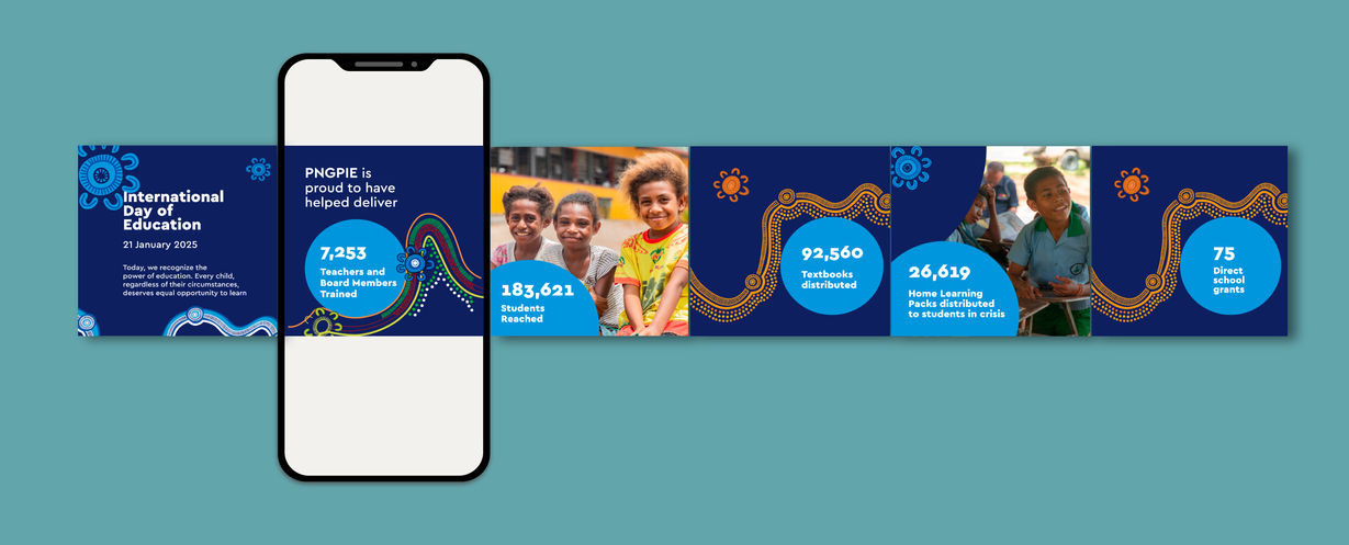 To acknowledge International Day of Education in 2025, the PIE program required social posts, as a carousel highlighting the impact of the program to date.